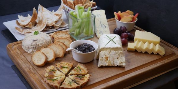 A 4 cheese terrine, Cheese and pickle cheeseball, Cheeseboard tart slices, 3 cheeses with melba toast, crostini and all the trimmings. £5pp