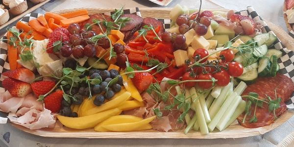 4 cheeses and 4 meats with a selection of fresh fruits and crudites. Tray shown serves 10-12 £45 (content may vary)
